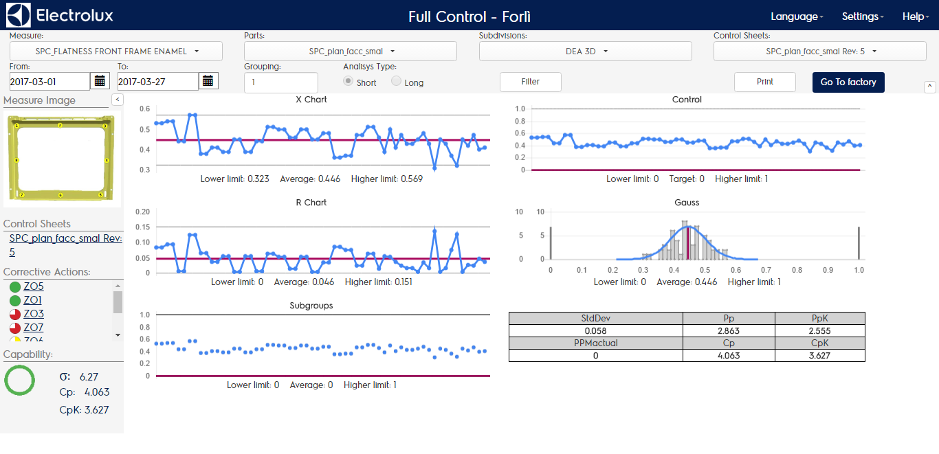 You can change measures and dimensions easily using the combo box in the header, to apply che changes just click on “filter” button. Using the “go to factory” button you can reach the local installation if it exists. You can hide the header using the arrow on the right bottom of the header.