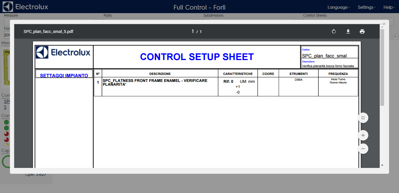- CONTROL SHEETS: all the procedures containing the measurements made