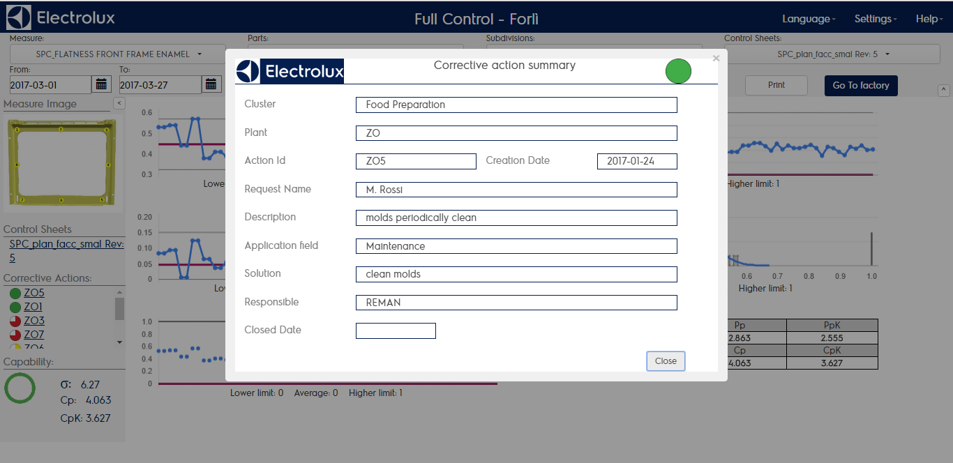 Clicking on a corrective action listed you will show a popup form with the details of the selected corrective action