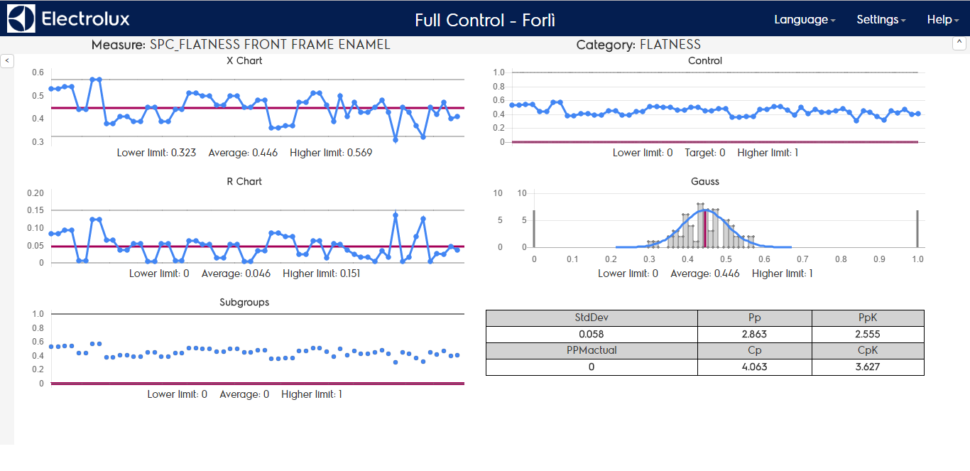 - CAPABILITIES TABLE: Standard deviation, Pp, Ppk, PPmActual, Cp, Cpk. (see chapter 6)