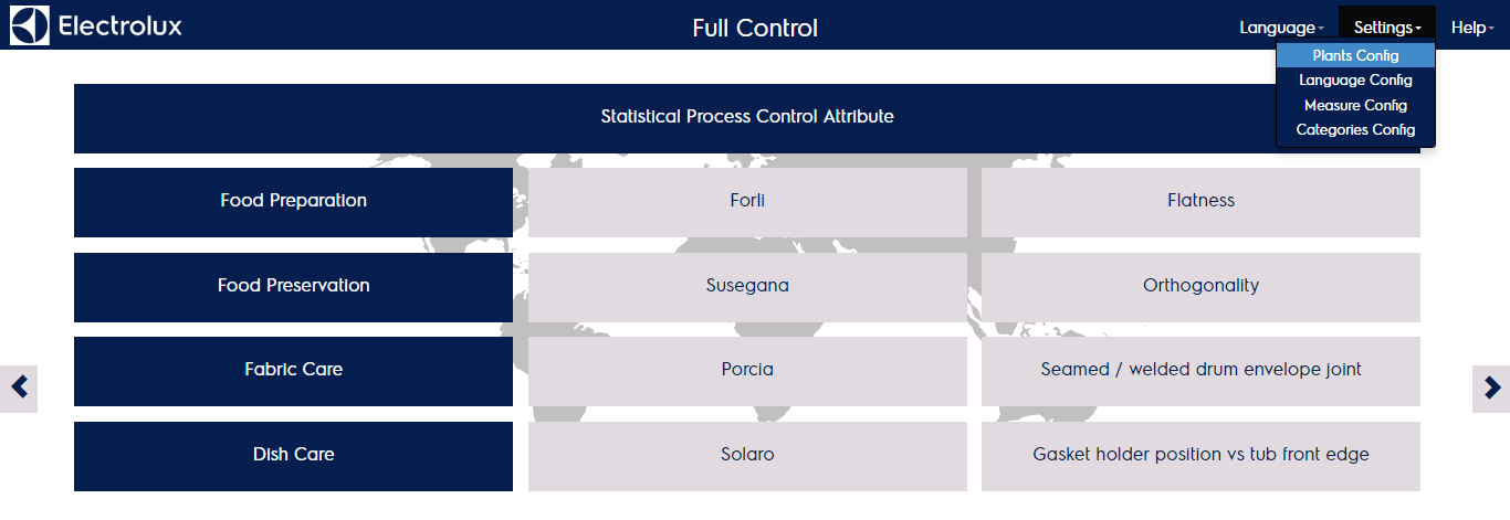 The “plants config” menu leads to the list of product lines and factories managed on the system
