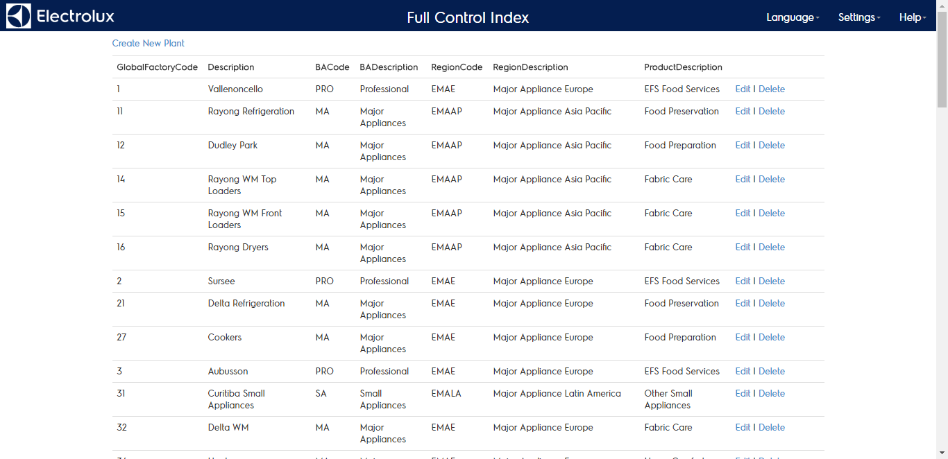 Each plant can be edited, deleted or created defining: