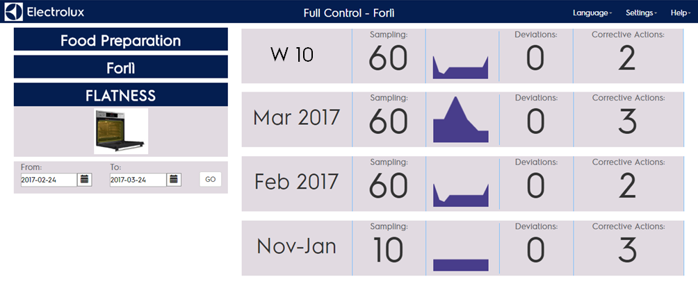 • Totale numbers of deviations (values not compliant with project specifications) in the period