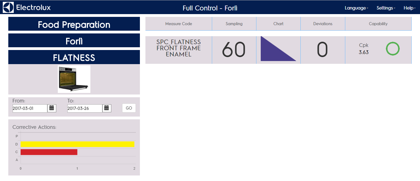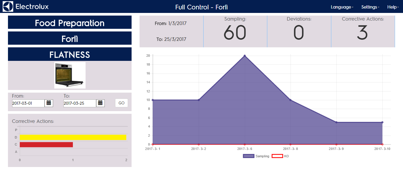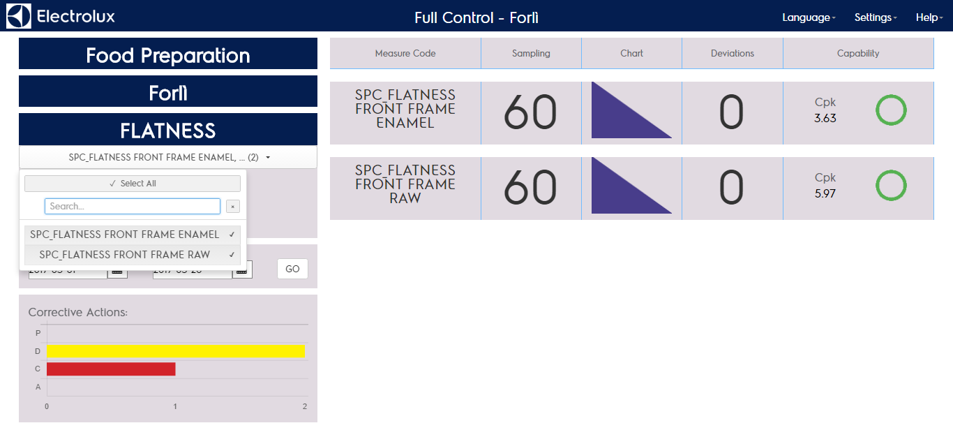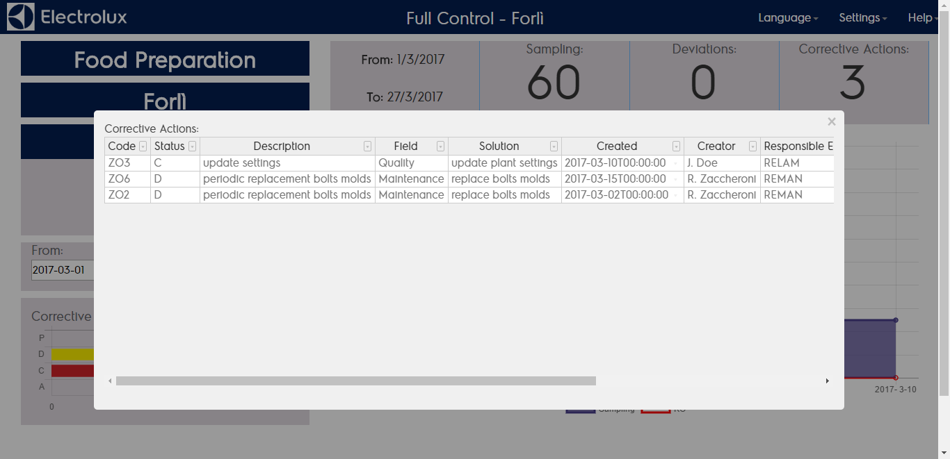 By clicking on the corrective actions graph you can show the list of corrective actions reported in the orizontal bar chart.