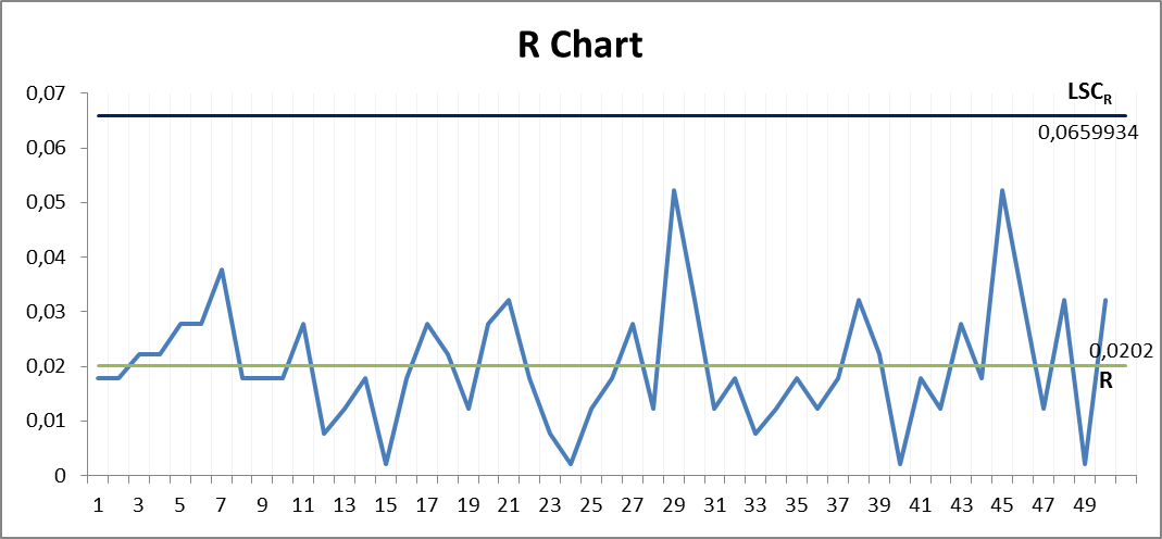 LSCR = upper control limit for R Chart = D4 * R LICR = lower control limit for R Chart = D3 * R