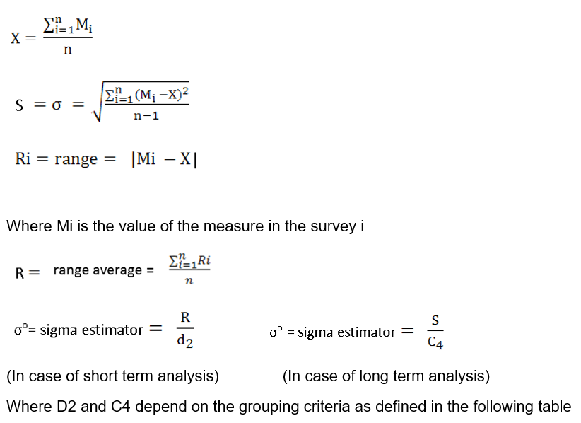 The key central SPC page calculates the capabilities of a measure code using the following formulas: