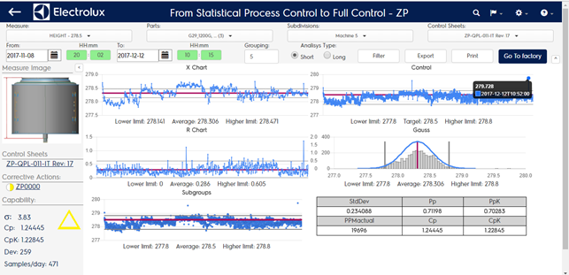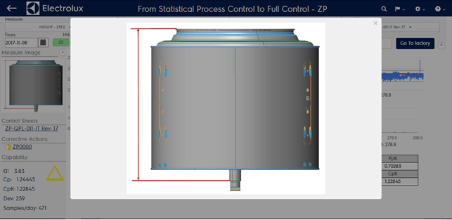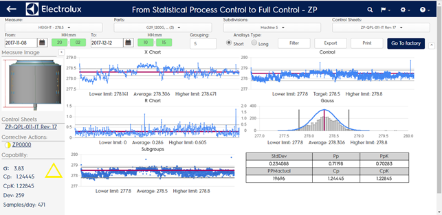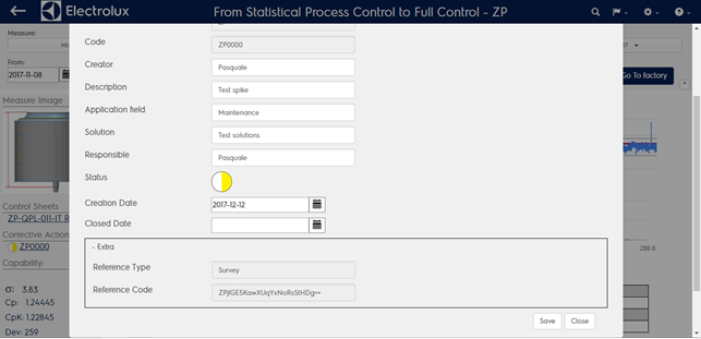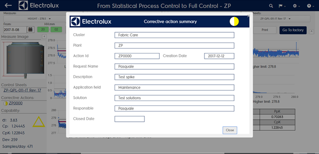 By clicking on the single value in the control chart is possible to add and show a corrective action that is directly linked to that sample (editable).