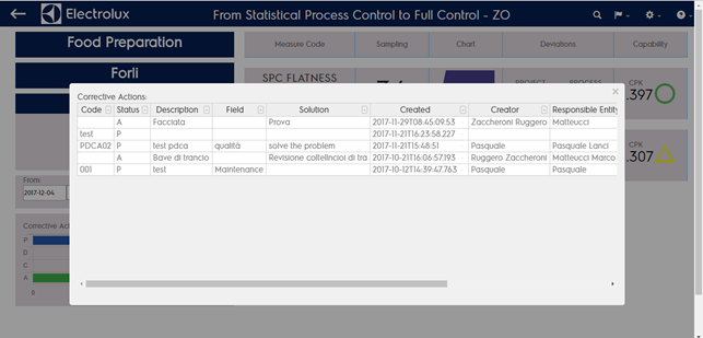By clicking on the corrective actions graph you can show the list of corrective actions reported in the orizontal bar chart.