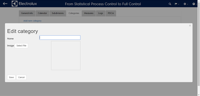Although category mapping is not mandatory is very useful if you wan to group data coming from the shop floor and show them as belonging to the same topic. Once the catagory has one or more measures paired you will be able to select the default one. To pair a measure see the measures section.