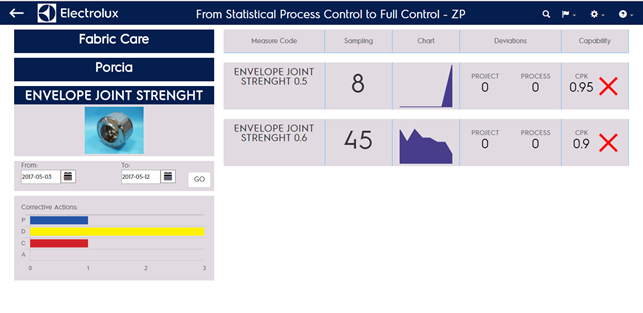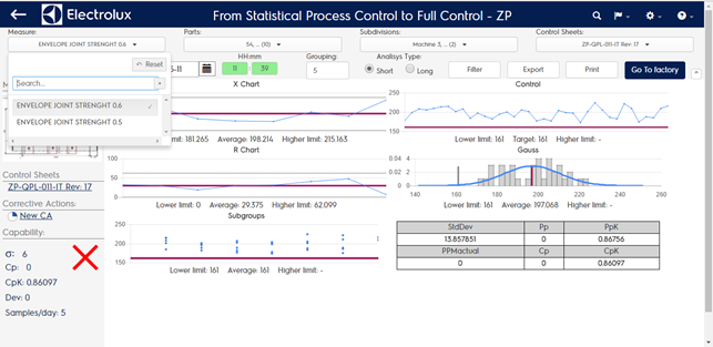 - Trends page shows the list of all the measures paired with the number of samples, sampling chart, deviations, capabilities